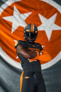 The alternate uniform had the state flag stripe on the helmet, the Great Smoky Mountain helmet graphic, a tri-star shoulder patch, a tri-star state logo on the pants, and a three-star design on the side of the pants. It was also the first home uniform in program history to have “Tennessee” across the chest.