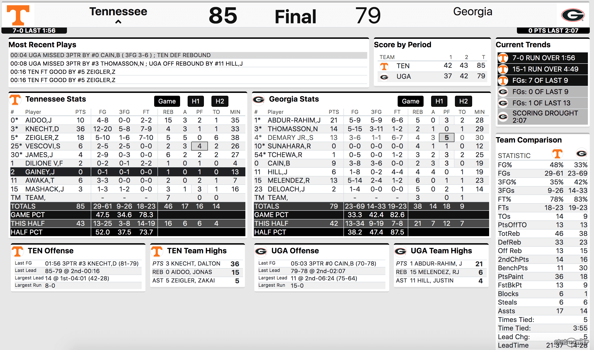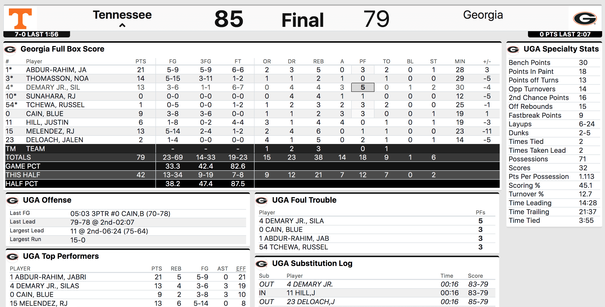 Strong Georgia offense was a big part of it but Tennessee did have some bad mistakes. They lost shooters to often including on the first two possessions of the second half when the Bulldogs hit triples.