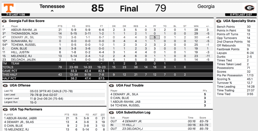 And when Georgia started hitting shots, Tennessee started closing out too aggressively which got them in defensive rotations early in possessions. The Bulldogs played beautiful offense then, moving the ball well and getting open looks.