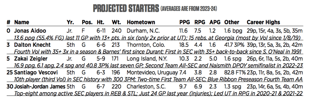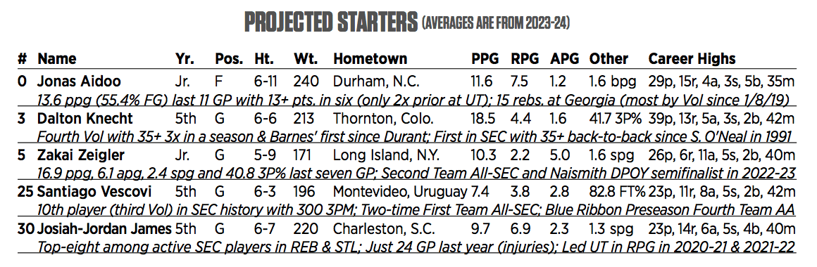 Vol forward Jonas Aidoo. Photo via Tennessee Athletics.