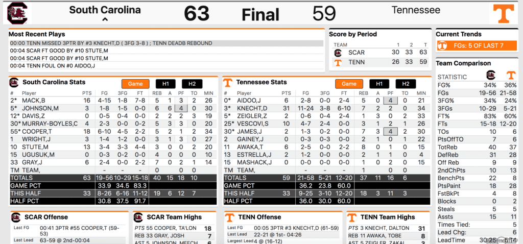 Much in the same way, the Gamecocks six offensive rebounds weren’t crazy given they’re a strong offensive rebounding team but a couple of the offensive rebounds occurred because of Tennessee gaffes.