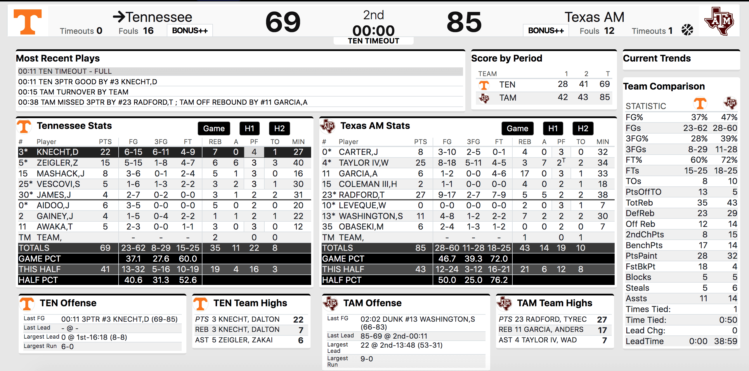 Tennessee was uncompetitive in the loss as the Aggies used red-hot shooting to gain an early lead before using strong defense to never let the Vols make a run.