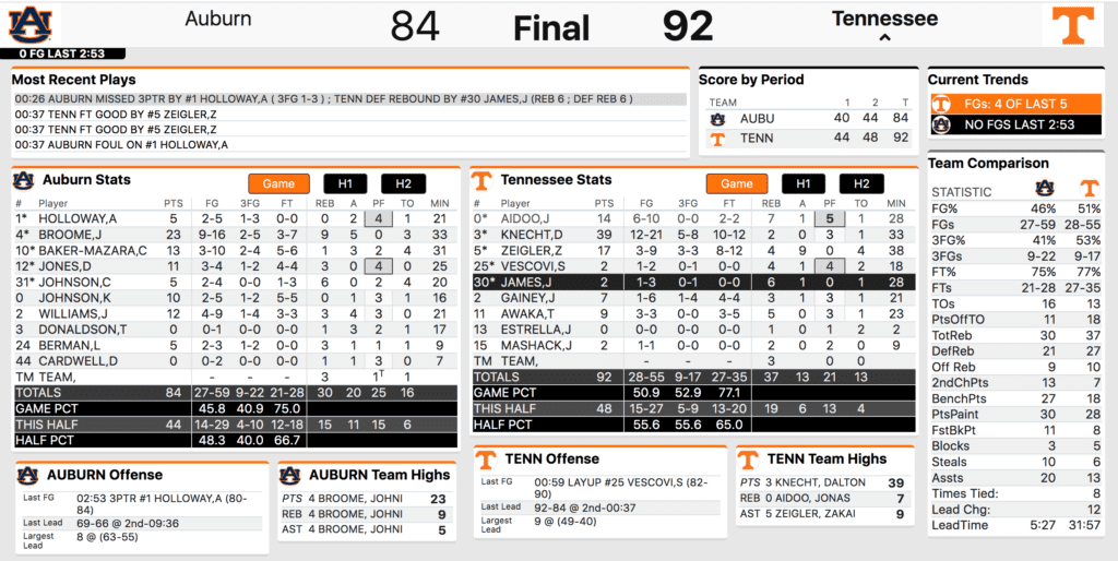 From there, the Vols’ offense collapsed and Auburn used a 23-6 run to take control of the game. Tennessee couldn’t get anything going on the offensive end in that stretch. Over a 7:07 stretch, Tennessee made just one-of-nine field goals.