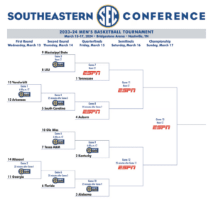 Here’s a look at the SEC Tournament bracket for this week’s SEC Tournament in Nashville, TN: