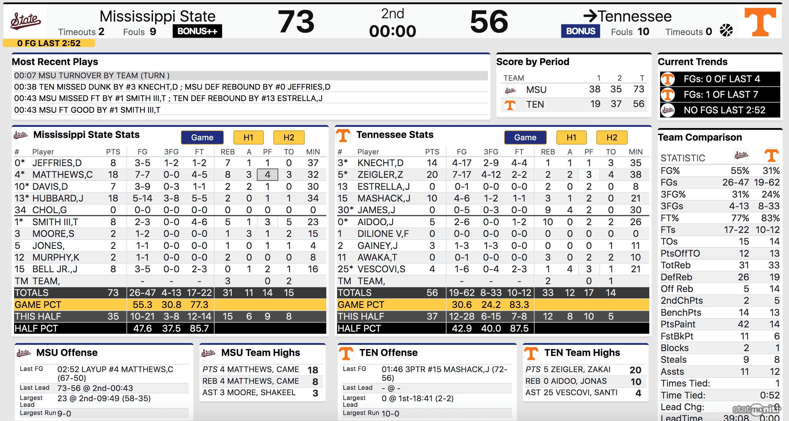 Tennessee didn’t even have that run in them on Friday afternoon. The Vols had a pair of mini pushes including a 9-2 run to open the second half and a 10-0 run with just over five minutes to go. But both those pushes only cut Mississippi State’s lead to 12 points.