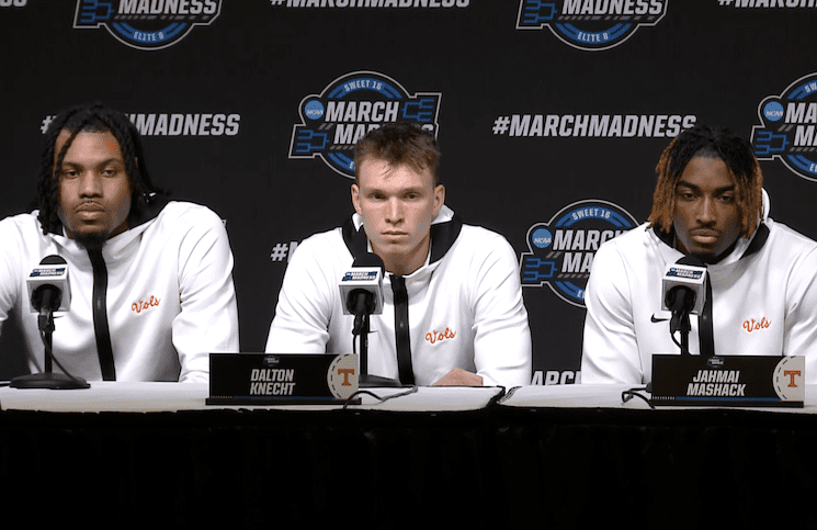 Tennessee guard Dalton Knecht, forward Jonas Aidoo, and guard Jahmai Mashack met with the media on the big stage on Thursday afternoon ahead of their