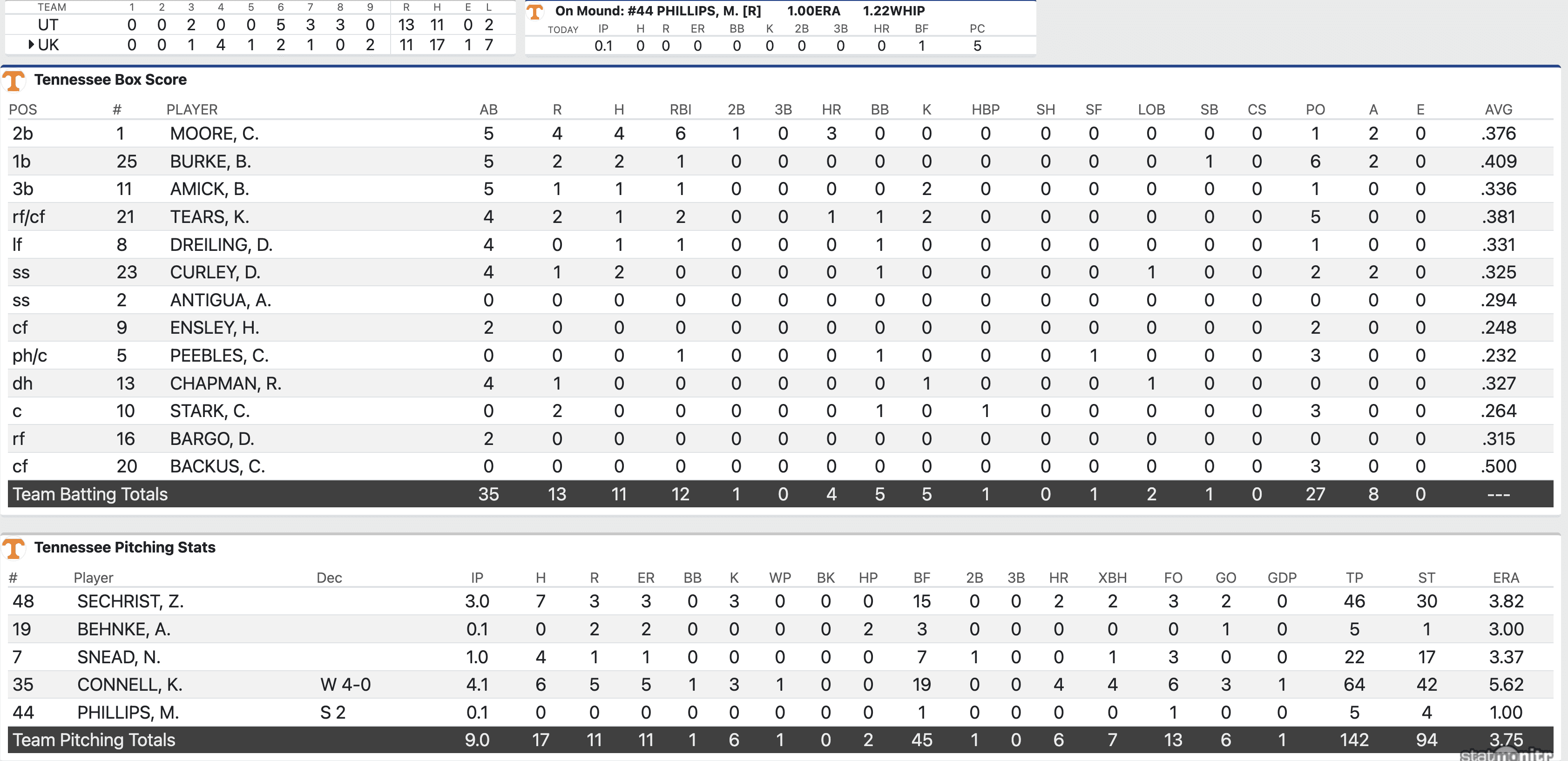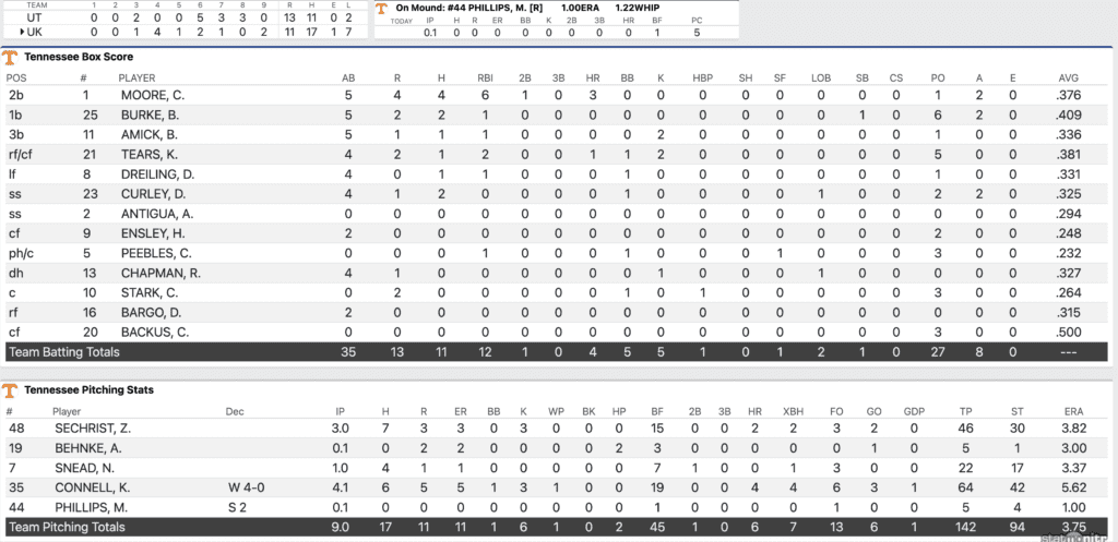 Tennessee vs. Kentucky Game Three Box Score
