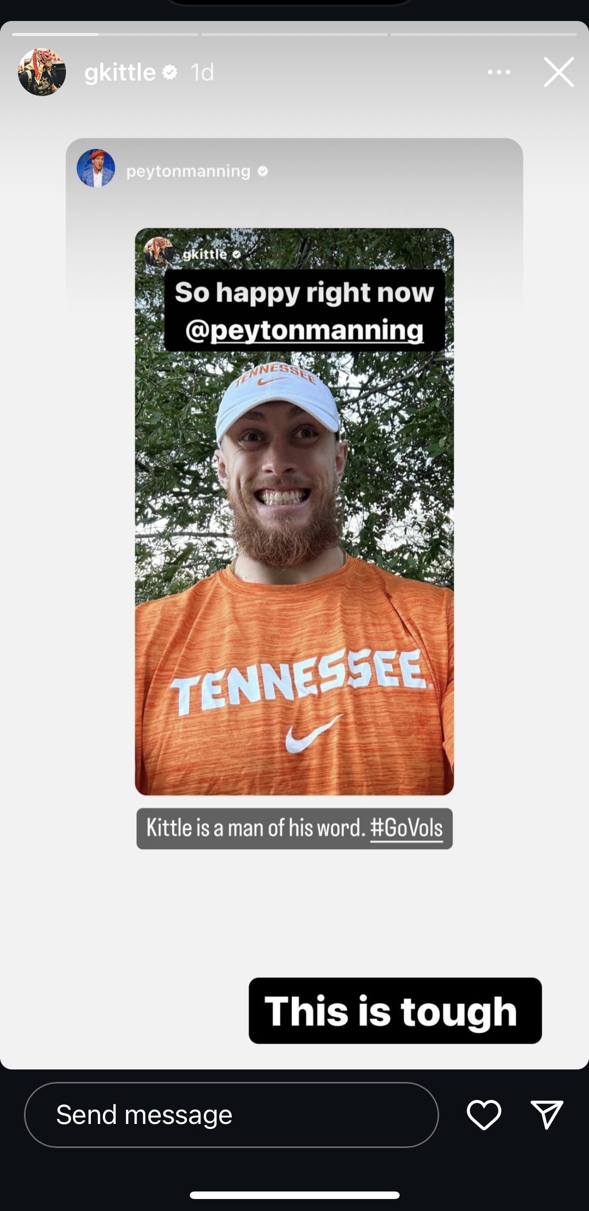 After Tennessee’s bowl win over Iowa on New Year’s Day, San Francisco tight end George Kittle (an Iowa alum) paid up a bet to Peyton Manning by wearing a Tennessee shirt on social media.