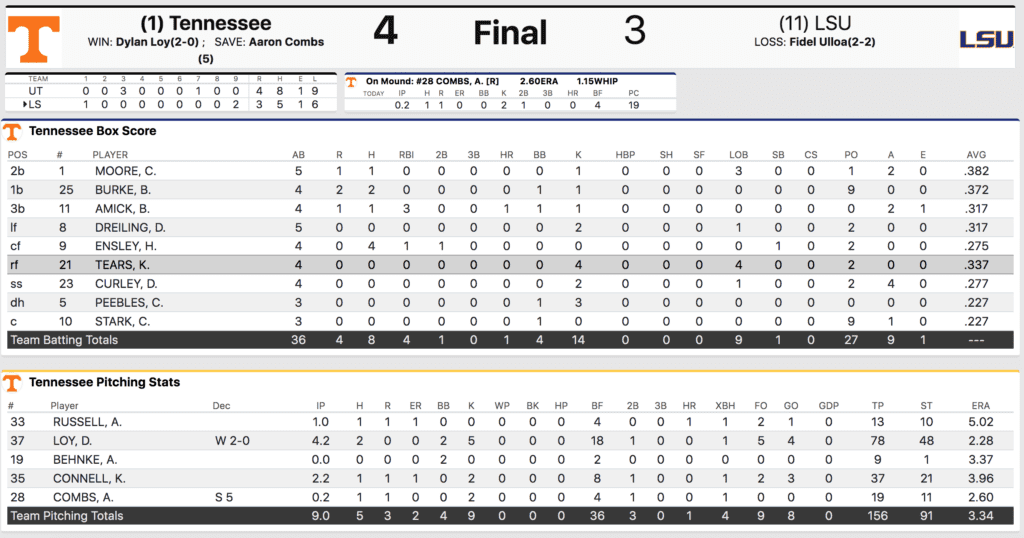 More From RTI: Play-By-Play Of Tennessee Baseball’s Win/Loss Against LSU