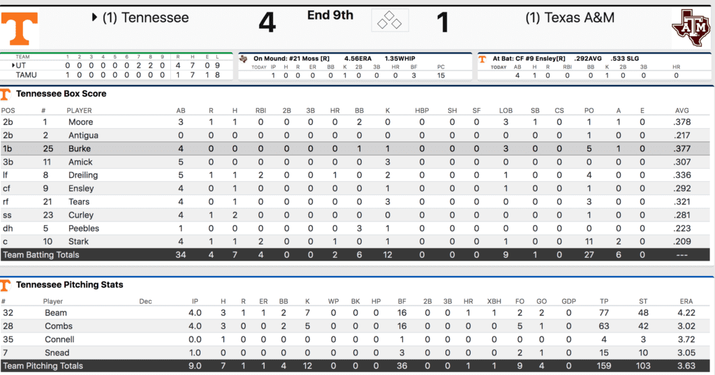 More From RTI: Live Updates Of Tennessee Baseball’s Game Two Win Over Texas A&M