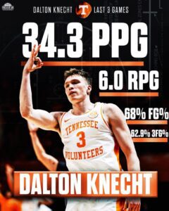 During the NCAA Tournament, LeBron went on record to mention Knecht in Tennessee’s matchup against Purdue, attesting to the viewership that special players bring to the tournament.
