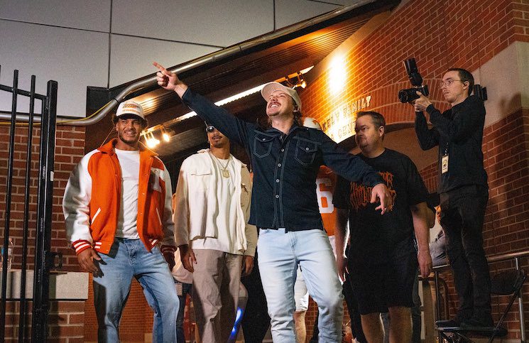One of the staples of Wallen’s shows is that he has a “walkout” entrance that typically features a sports star or celebrity from the city. Wallen brought Tony Vitello and the Vols baseball team out for the Friday night walkout but was all football for the Sunday finale – the former Gibbs High School baseball player brought out Josh Heupel, QB Nico Iamaleava, WR Bru McCoy, and VFL Peyton Manning in full uniform.
