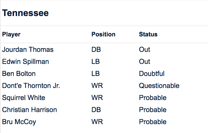 With that, let’s take a look at the Tennessee-Friday Wednesday availability report including some notes on the report for both teams.