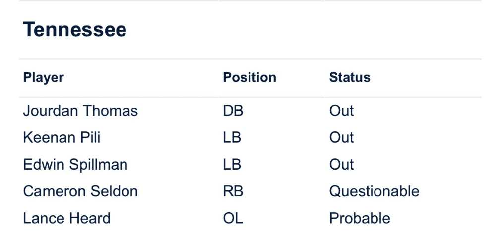 With that, let’s take a look at the Tennessee-Alabama Wednesday availability report including some notes on the report for both teams.