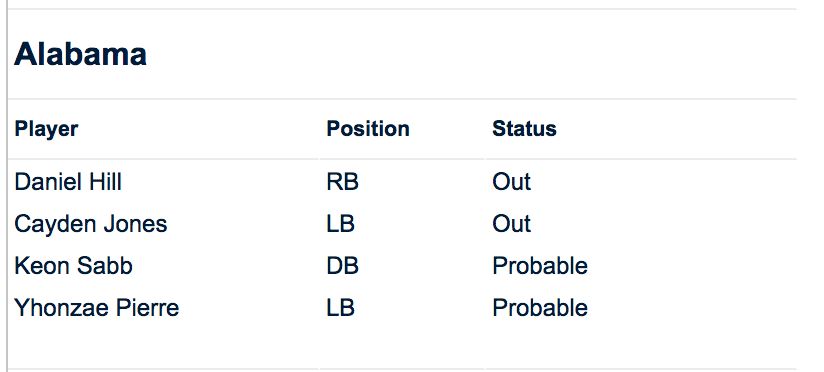 With that, let’s take a look at the Tennessee-Alabama Friday availability report including some notes on the report for both teams.