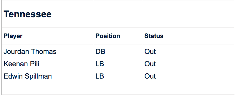So far this season, Friday night has been the definitive night for Tennessee’s availability reports with no changes on game day. That proved to be the case again this week.