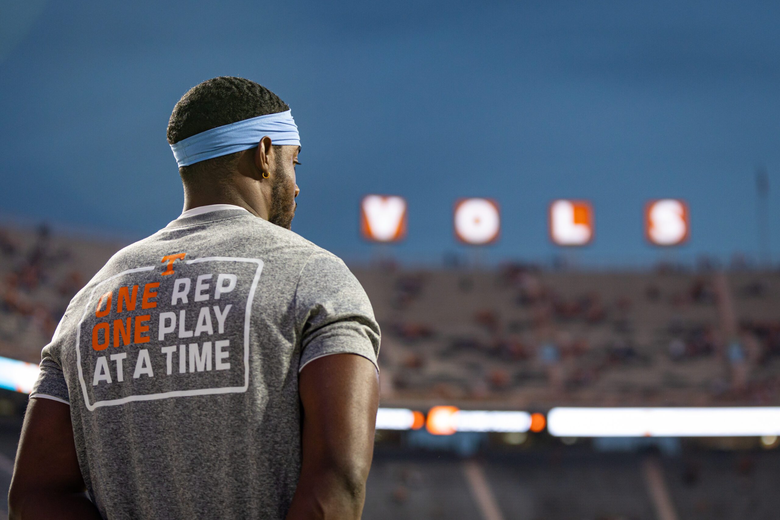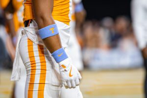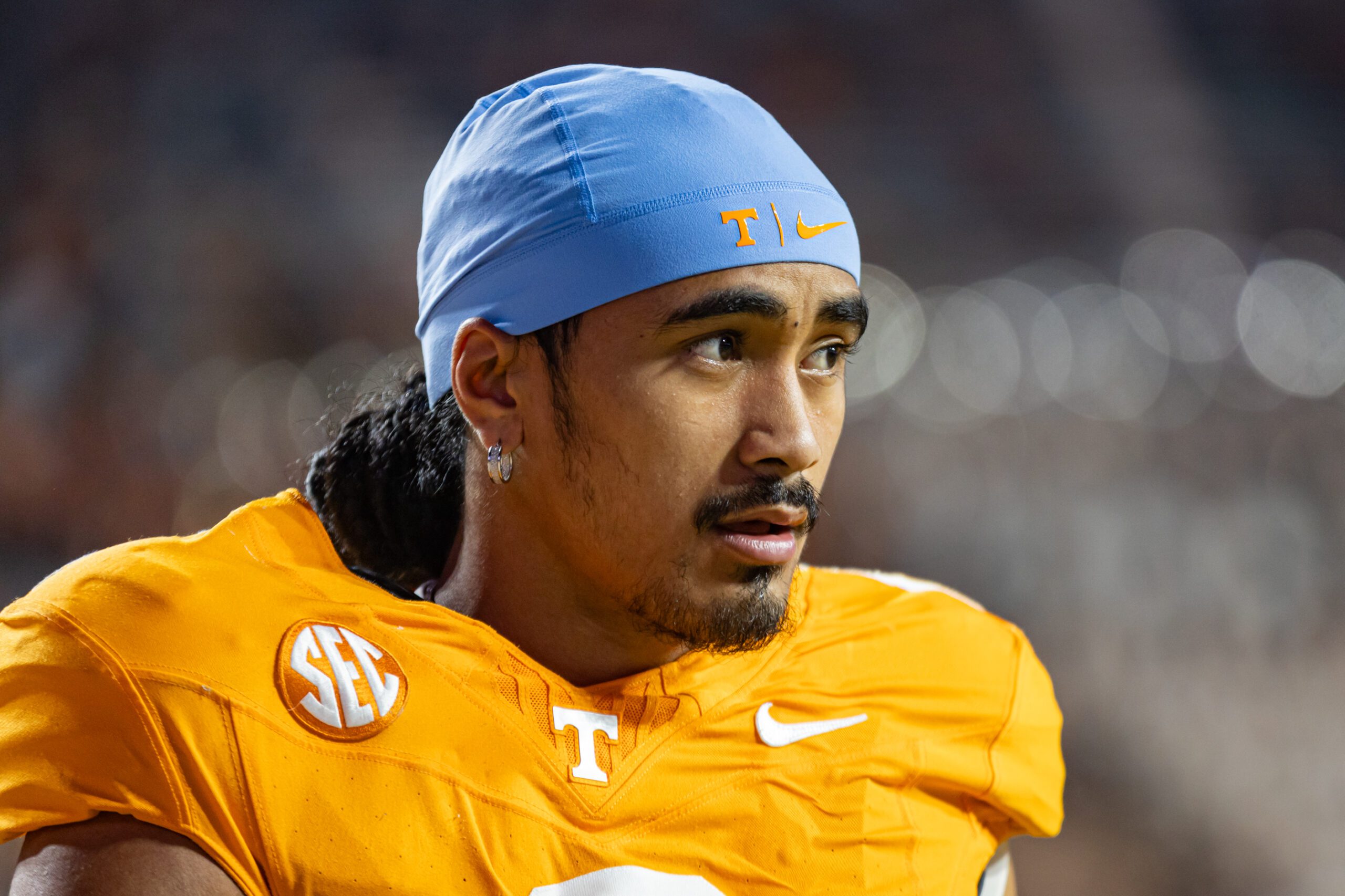 Nico Iamaleava (8) dons ‘Summitt Blue’ accessories for a game against Mississippi State at Neyland Stadium. Saturday, Nov. 9, 2024. Cole Moore/RTIPeyton Lewis (27) dons ‘Summitt Blue’ accessories for a game against Mississippi State at Neyland Stadium. Saturday, Nov. 9, 2024. Cole Moore/RTIWilliam Wright (0) dons ‘Summitt Blue’ accessories for a game against Mississippi State at Neyland Stadium. Saturday, Nov. 9, 2024. Cole Moore/RTIJourdan Thomas (4) stands with his team prior to a game against Mississippi State at Neyland Stadium. Saturday, Nov. 9, 2024. Cole Moore/RTI
