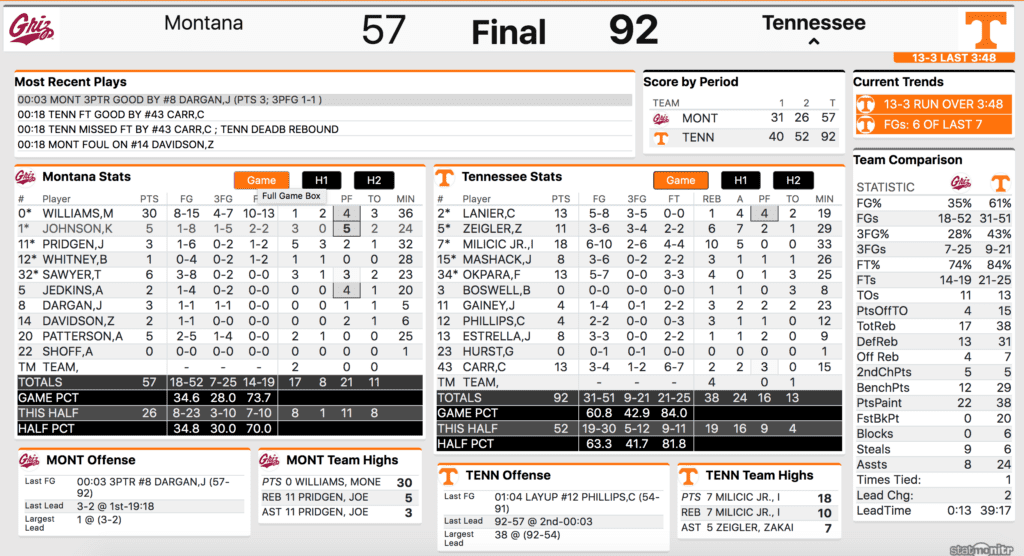 The Vols didn’t play horribly without Zeigler or Lanier but they were predictably less efficient which allowed Montana to remain in striking distance throughout the first half.