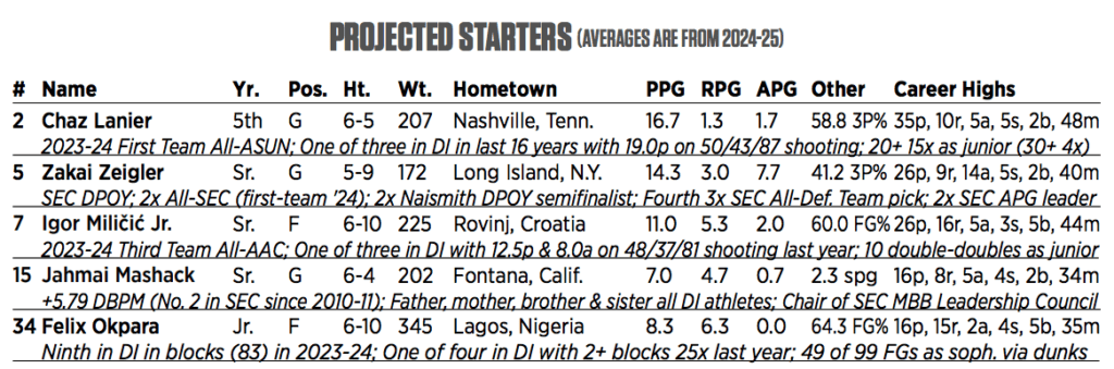 Assists: Zakai Zeigler — 7.7 APG, 5.3 TOPG, 32 MPG