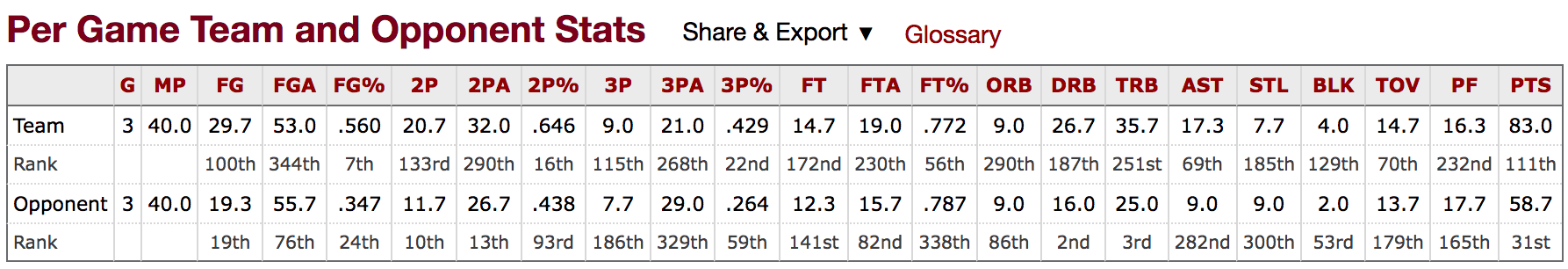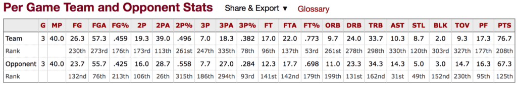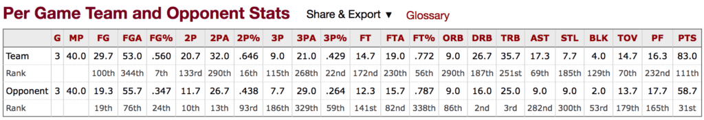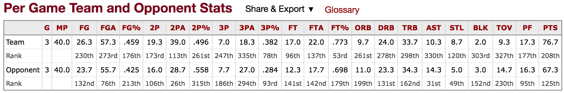 Assists: LJ Thomas — 3.7 APG, 2.3 TOPG, 33.7 MPG