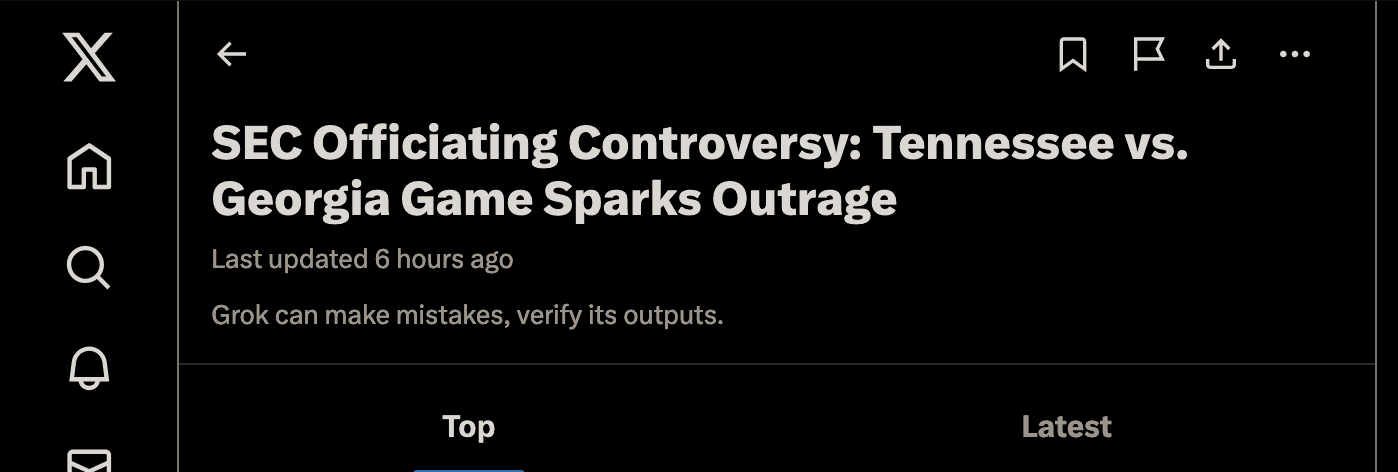 The section was titled, “SEC Officiating Controversy: Tennessee vs. Georgia Game Sparks Outrage.”