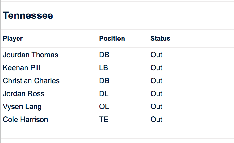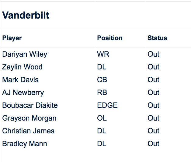 With that, let’s take a look at the official Tennessee-Vanderbilt availability report.
