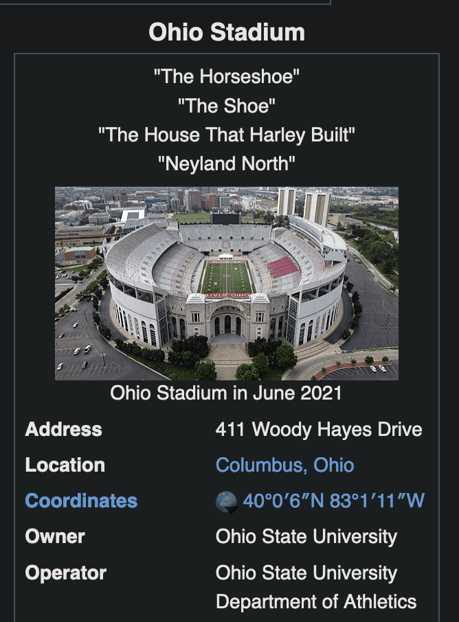 At the time of this publication, the Ohio Stadium Wikipedia page has an extra nickname – “Neyland North.”