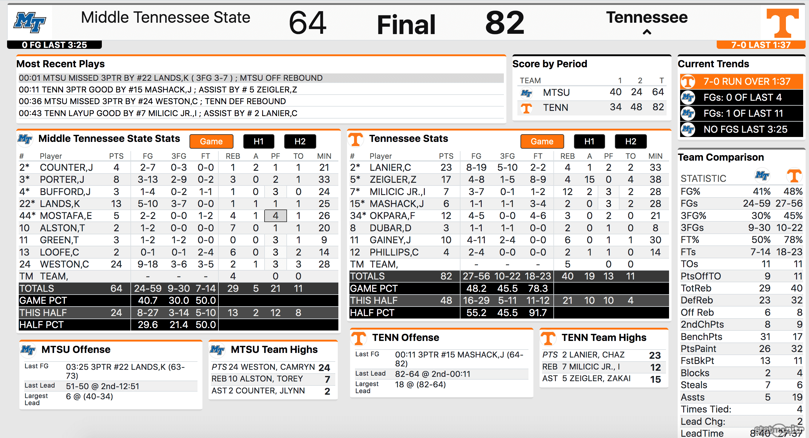 MTSU scored just 24 points in the second half after scoring 40 points in the first half. That allowed the Vols to not just win but to coast down the stretch.