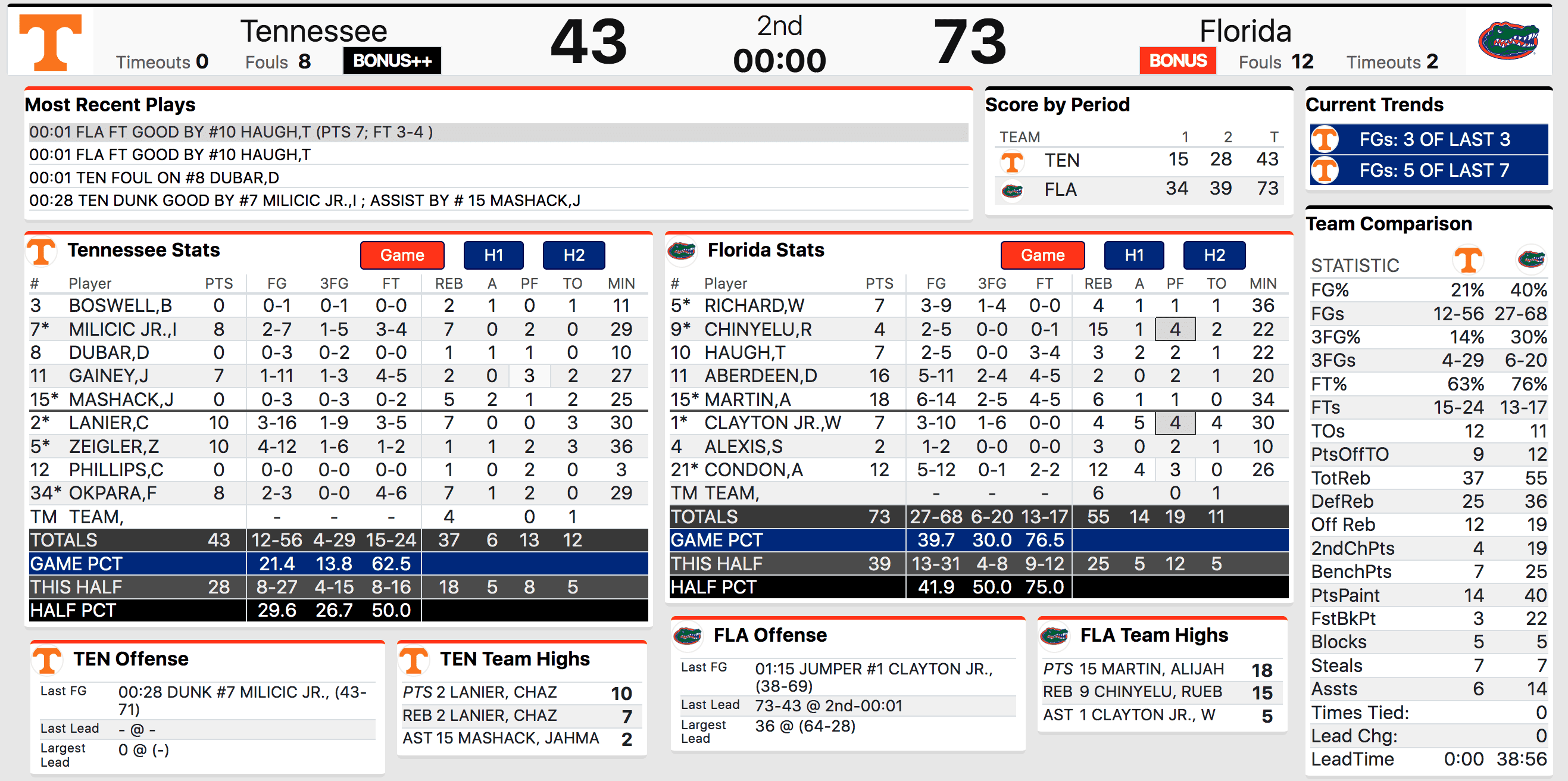 Rebounding was a clear key coming into the game. Florida entered the game as the nation’s fifth best offensive rebounding team while Tennessee entered the game as the nation’s sixth best offensive rebounding team.