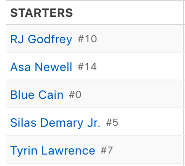 Points: Asa Newell — 15.4 PPG, 58.1 FG%, 28.1 3PT%