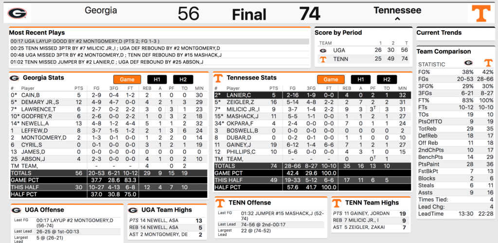 Both Tennessee and Georgia entered this game as two of the nation’s best offensive rebounding teams and as teams good at forcing turnovers with small turnover issues themselves.