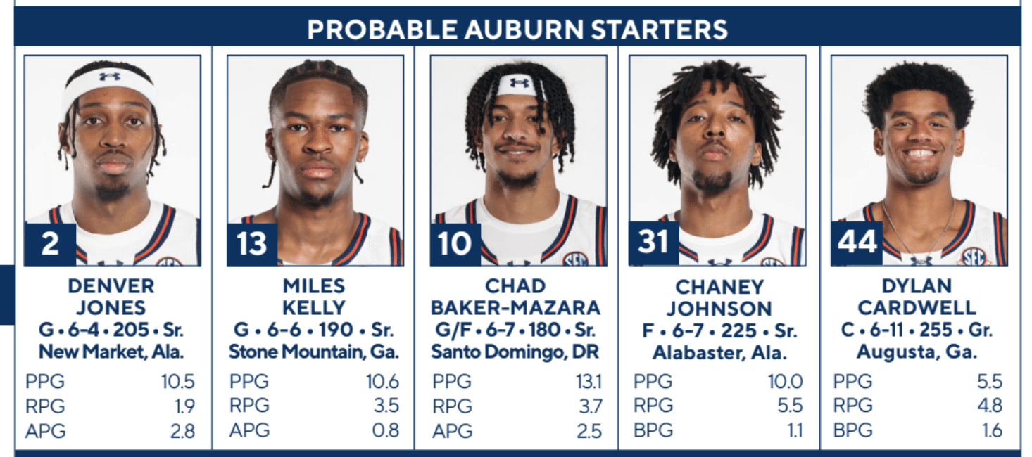 “Well, it’s difficult. And we go into every game and you’ll always put up key players that the numbers tell you that you think they play through, but you talk about every player. And we would say that any player in this conference at this level has the ability to do that at any point in time. So we’re not going to overlook anybody on that roster, because we’ve seen them. And it’s not just Auburn, it’s just everybody we play. We’re not going to overlook anybody because we know that if they’re at this level, they’re capable of having a big night.”
