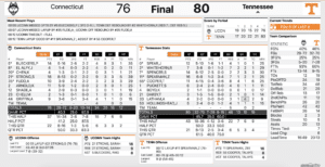 The Lady Vols kept it close with the Huskies throughout the first half but UConn was able to take the narrow 39-37 lead into the halftime break. Kim Caldwell’s squad took over in the third quarter, outscoring UConn 22 to 15 with a five-point lead heading into the final frame.