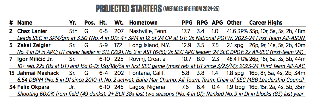 Assists: Zakai Zeigler — 7.5 APG, 3.0 TOPG, 34.4 MPG