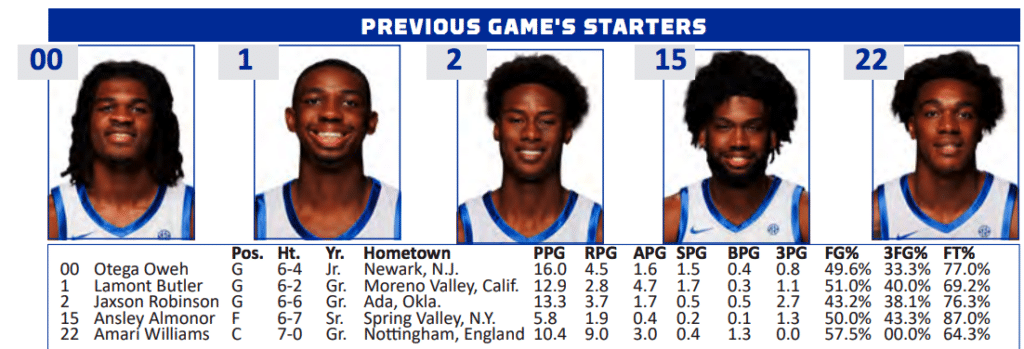 Kentucky (via UK Game Notes):