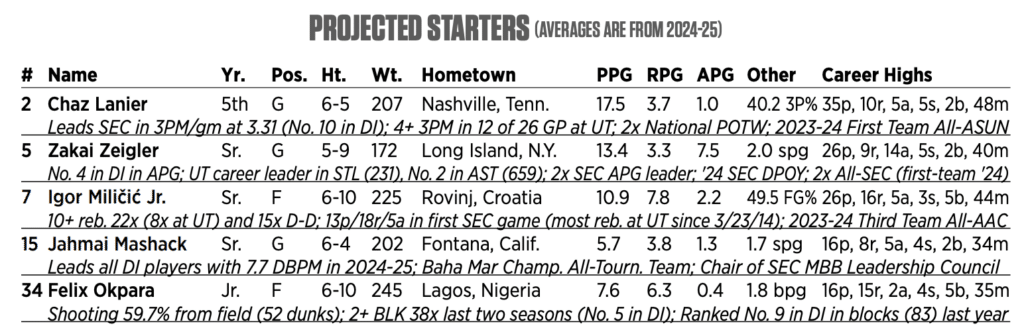 Points: Chaz Lanier — 17.5 PPG, 41.8 FG%, 40.2 3PT%
