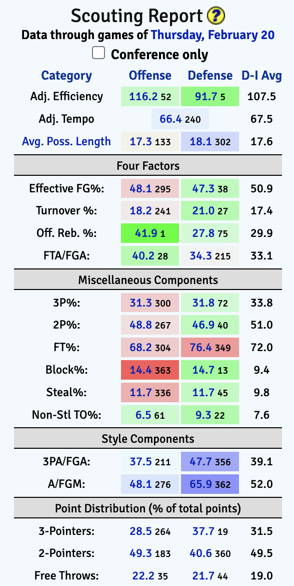 “Well, again, rebounding (is) the first thing and the fact that they play extremely hard and well coached. They know their system. They know what they want to play. And you know, I’ve known Buzz for a long time and his teams always compete at the highest level. They (are) best in the country rebounding wise. You look at that. Drive the ball hard. They want to pick the mismatches they want to go after and that’s what they’re going to do. But just great effort from start to finish.”