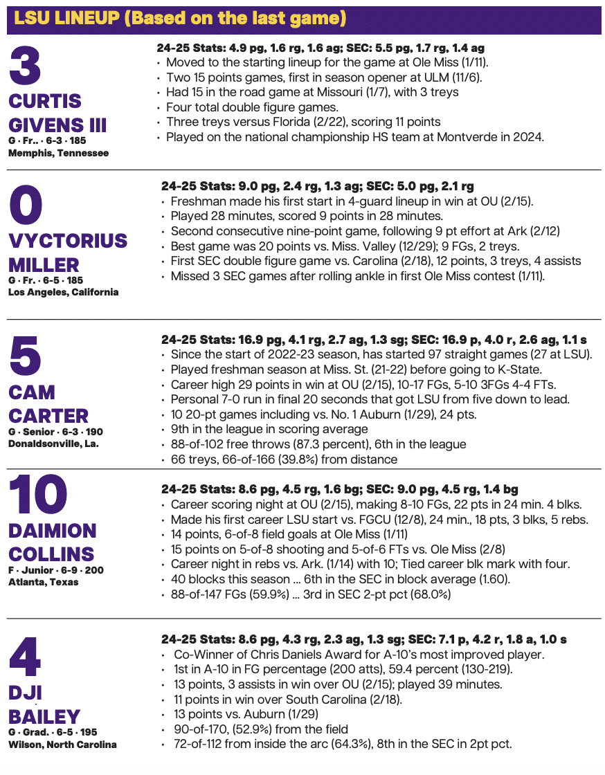 The Vols are coming off perhaps their best win of the season at Texas A&M while LSU is near the bottom of the SEC standings but has played better as of late, winning two of its last three games.