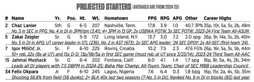 Points: Chaz Lanier — 17.8 PPG, 42.5 FG%, 40.7 3PT%