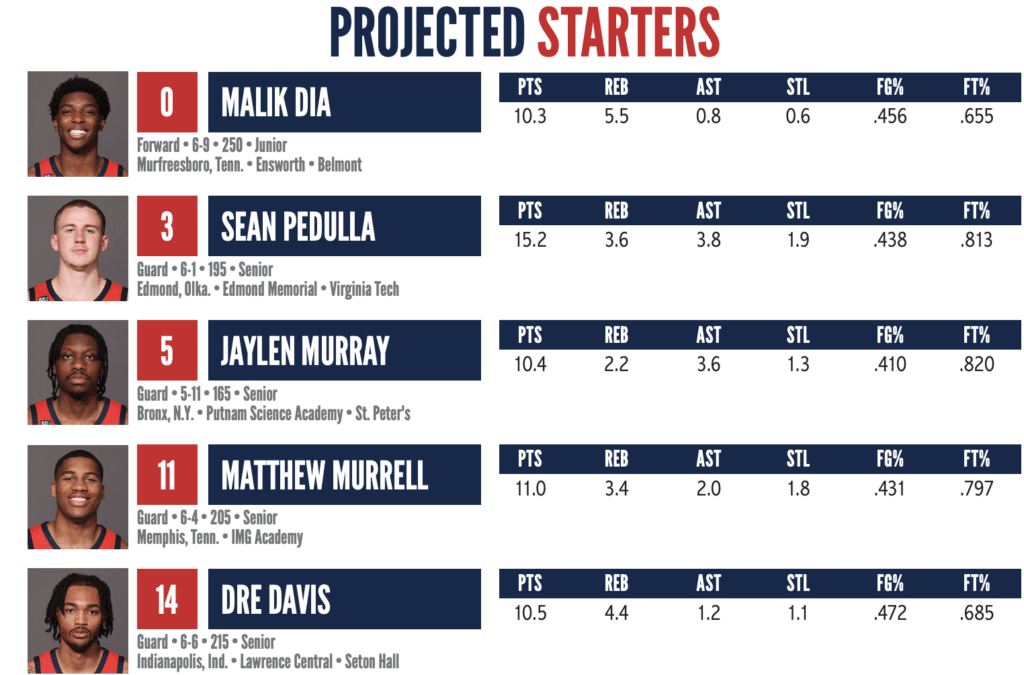 Assists: Sean Pedulla — 3.8 APG, 1.9 TOPG, 33.1 MPG