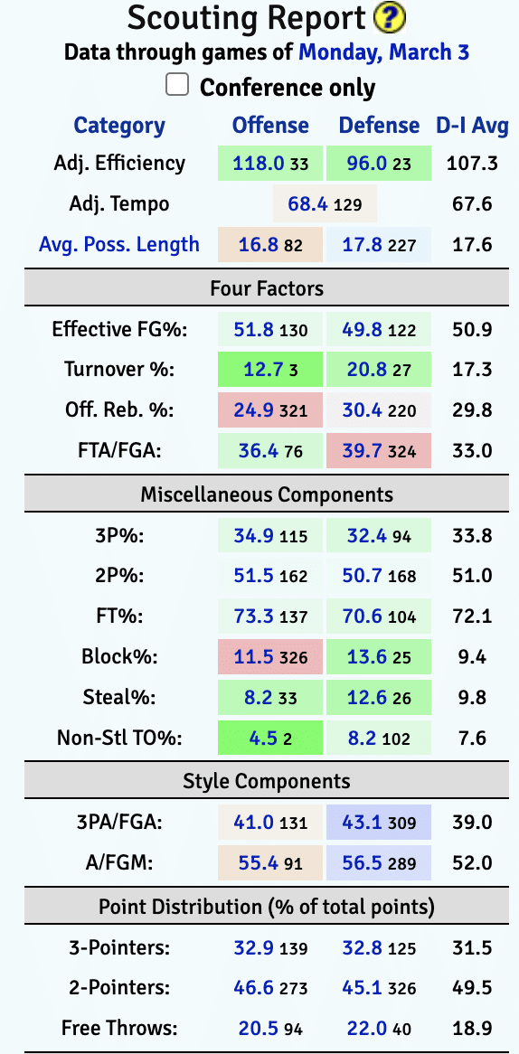 Team Statistics (via KenPom)