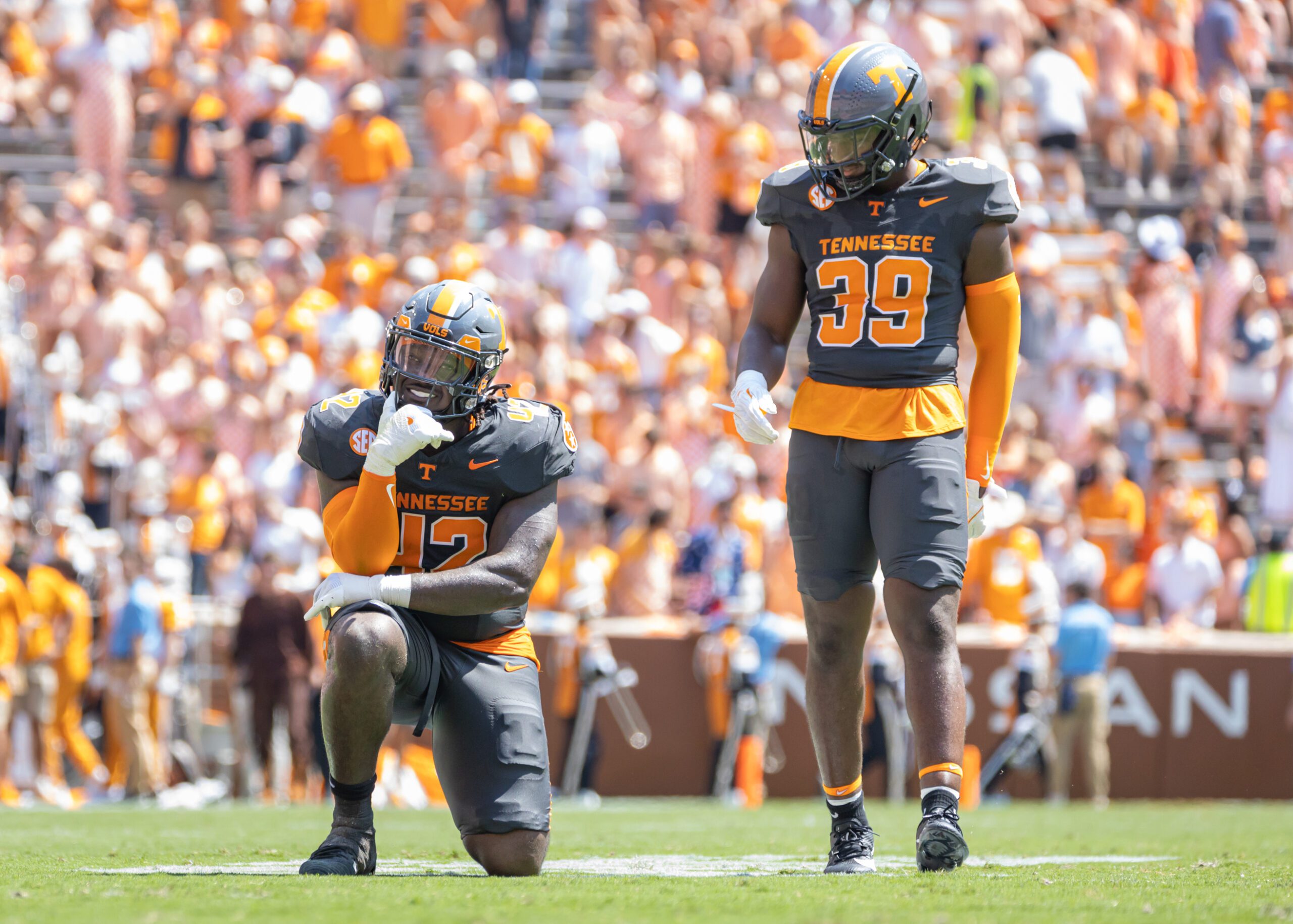 The alternate uniform had the state flag stripe on the helmet, the Great Smoky Mountain helmet graphic, a tri-star shoulder patch, a tri-star state logo on the pants, and a three-star design on the side of the pants. It was also the first home uniform in program history to have “Tennessee” across the chest.