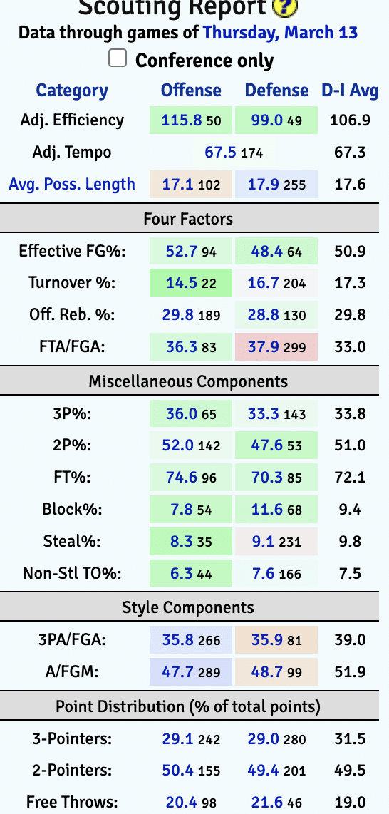Those factors all point in Tennessee’s direction. But the Vols’ recent matchups against Texas and former Rick Barnes’ assistant Rodney Terry have all been low scoring tight affairs. Tennessee gets it done but they don’t do so in a big blowout fashion.