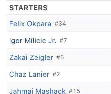 Assists: Zakai Zeigler — 7.5 APG, 2.9 TOPG, 34 MPG
