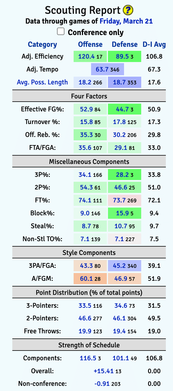 Assists: Zakai Zeigler — 7.5 APG, 2.9 TOPG, 34 MPG