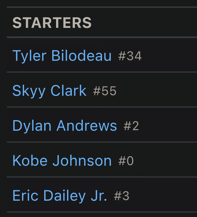 Points: Tyler Bilodeau — 13.5 PPG, 49.5 FG%, 73.0 FT%