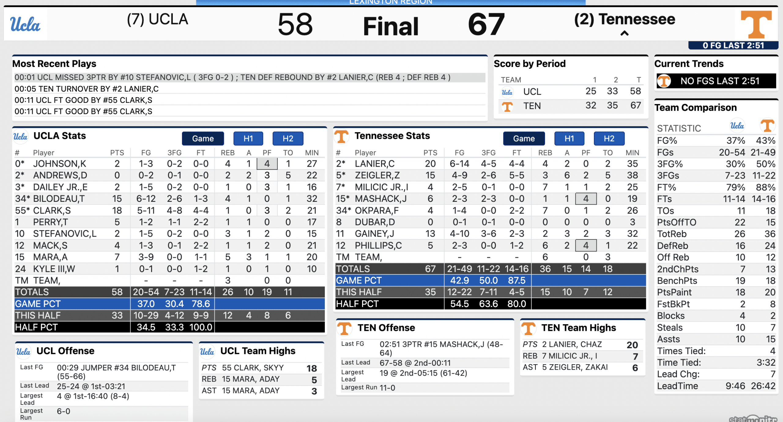 The second half started like the first half ended. UCLA turned it over on the opening possession and Zakai Zeigler got three points the old fashioned way. That sequence jumpstarted a 14-6 run for Tennessee over the first 5:54 of second half.