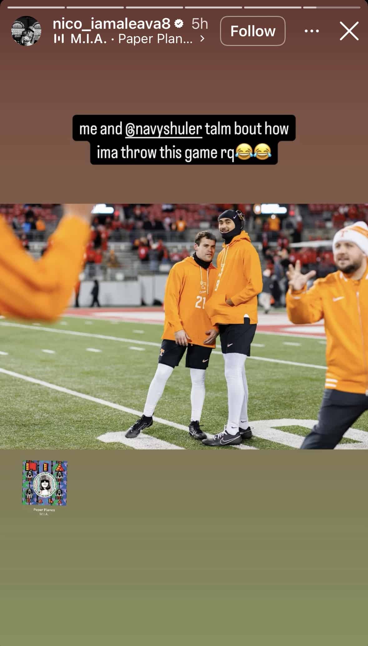 The second picture was of himself and former Tennessee quarterback Navy Shuler before the OSU game, captioned, “Me and @NavyShuler talm bout how ima throw this game rq” with laughing emojis.