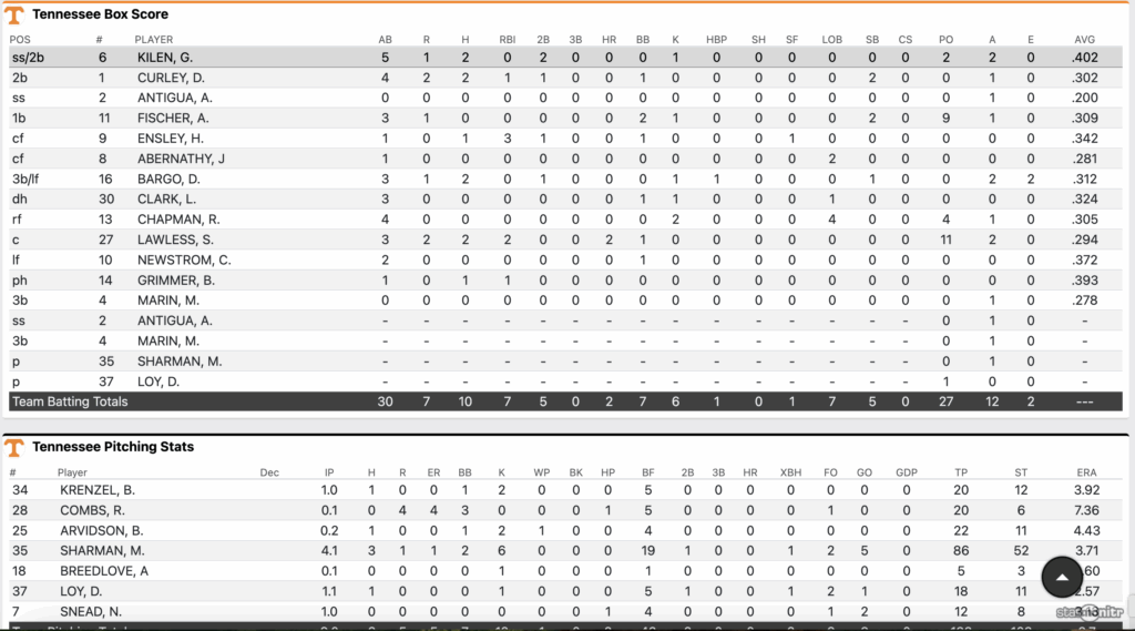 Krenzel finished the game allowing zero runs on one hit and one walk while striking out a pair. We’ll see what Tony Vitello says about Krenzel’s potential role over the weekend against Auburn.