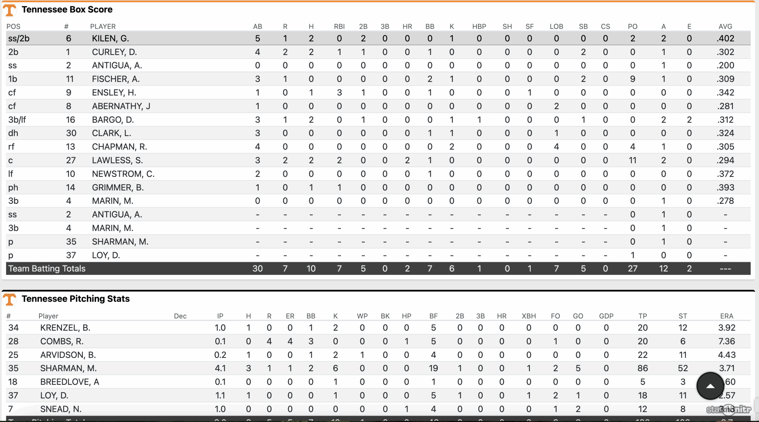 Lawless twice went yard against the Norse, first with a 416 foot towering blast that cleared the porches in left field to cut the deficit to 4-3 in the third inning. Then in the sixth inning, Lawless gave Tennessee a bit of insurance with a solo homer into the left field porches.